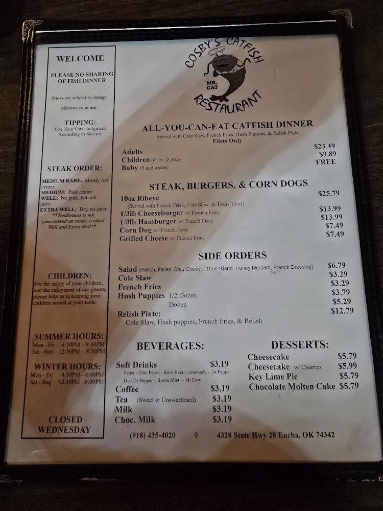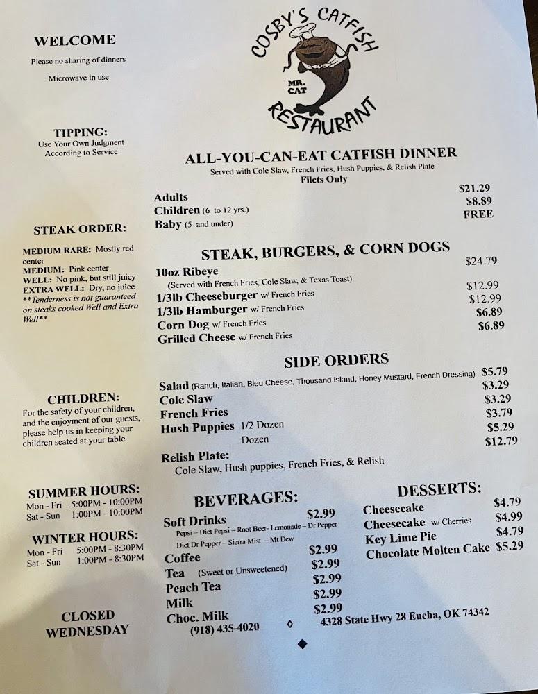 Nestled at 4328 State Highway 28 in Eucha, Cosby's Catfish Restaurant is a beacon for fish lovers and families seeking a hearty meal. This charming spot captures the essence of southern hospitality, inviting diners to enjoy their meals family-style. The restaurant features inviting indoor seating alongside outdoor options for those who prefer fresh air with their food. Cosby's prides itself on being a welcoming place for everyone, from families to solo diners. The atmosphere is both cozy and casual, with nods to local history adding character. With an emphasis on fresh ingredients, many items are made from cherished family recipes passed down through generations. Visitors often note how the friendly staff and warm ambiance make them feel like part of the family. The restaurant’s location, just a stone's throw away from the lakes, attracts many locals and tourists alike, making it a perfect stop after a day of outdoor activities.